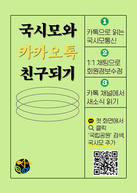 - 매 달 1번 보내드리는 국시모통신을 편하게 카톡으로 받아보고, 다른 친구들에게 공유하세요.